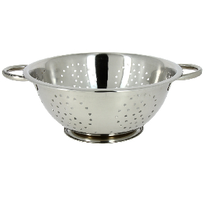 Удобный дуршлаг Мфк с ручками и специальным основанием, благодаря чему его можно ставить прямо в раковину и не нужно придерживать. Изготовлен из прочной и долговечной нержавеющей стали наивысшего качества. Такой дуршлаг будет полезен как на домашней, так и на профессиональной кухне. Диаметр по верхнему краю – 26 см.