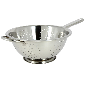 Удобный дуршлаг Мфк с ручками и специальным основанием, благодаря чему его можно ставить прямо в раковину и не нужно придерживать. Изготовлен из прочной и долговечной нержавеющей стали наивысшего качества. Такой дуршлаг будет полезен как на домашней, так и на профессиональной кухне. Диаметр по верхнему краю – 26 см.