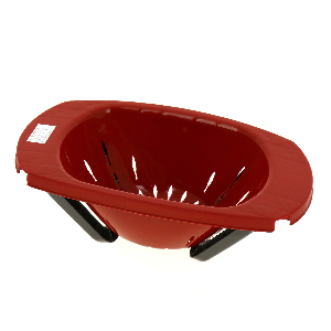 Дуршлаг – один из самых необходимых предметов кухонной утвари. Он предназначен для слива воды при приготовлении макаронных изделий и круп, а также для промывания овощей, грибов, фруктов и ягод. Оригинальная модель обладает компактностью и удобна в эксплуатации. Ручки можно использовать как упоры на раковину или как ножки-подставки.