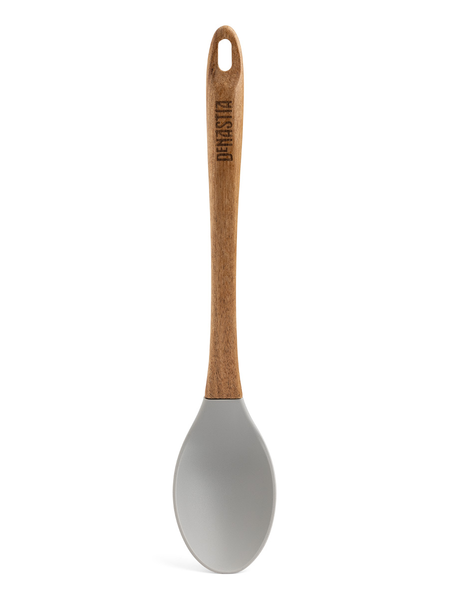 Ложка кулинарная 33x6x1,6см DE'NASTIA деревянная ручка из акации серый силикон