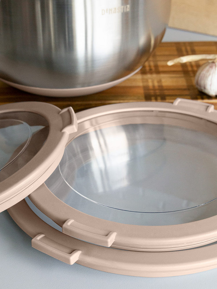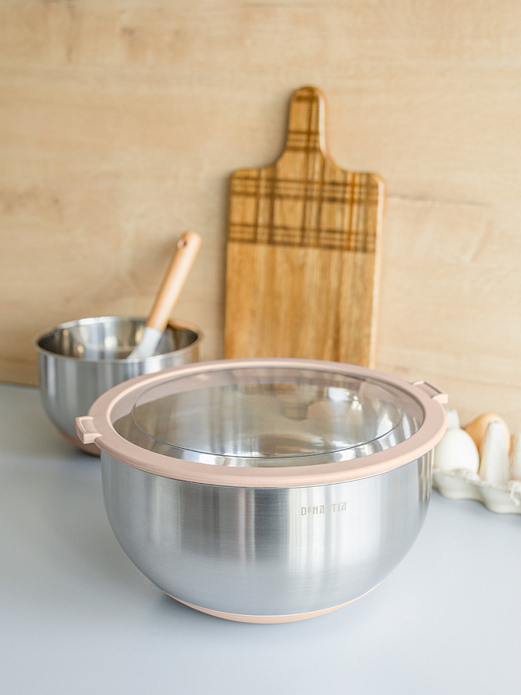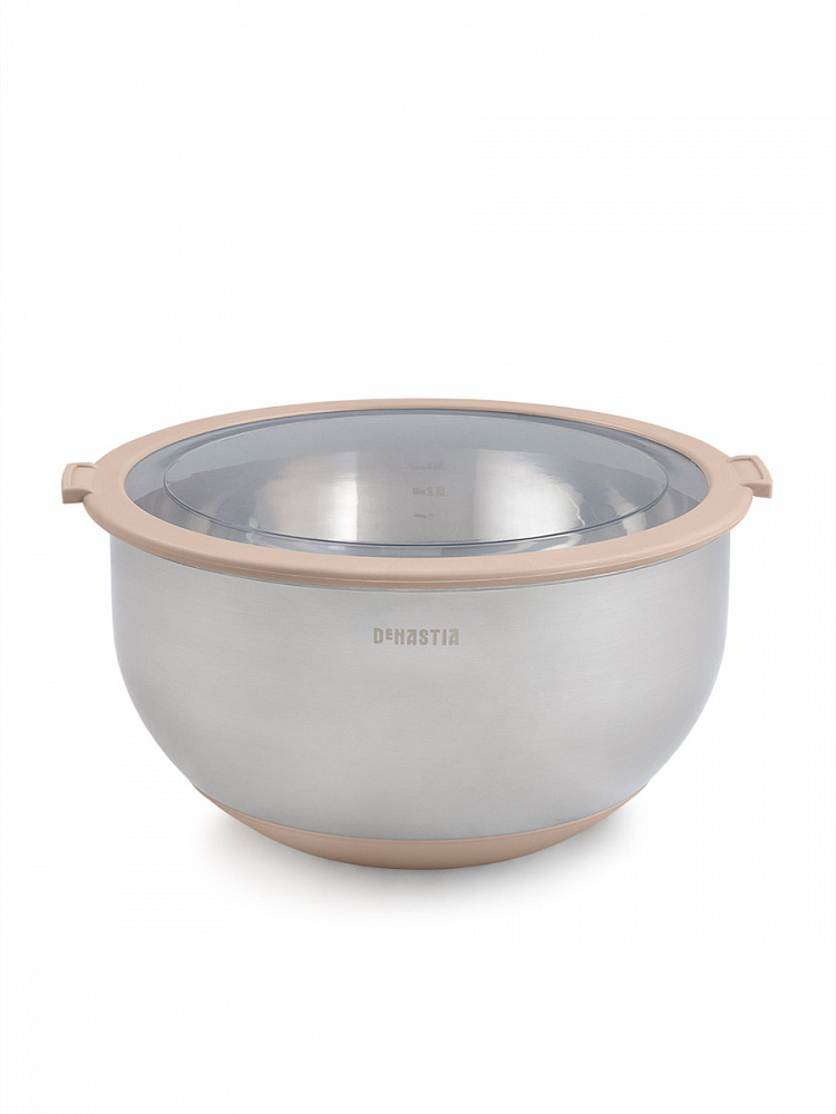 Миска 5л DE'NASTIA прозрачная крышка силиконовое дно бежевый нержавеющая сталь