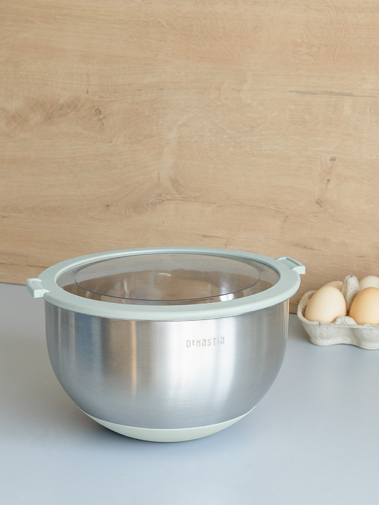 Миска 3л DE'NASTIA прозрачная крышка силиконовое дно ментол нержавеющая сталь