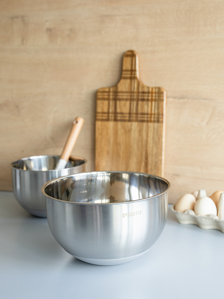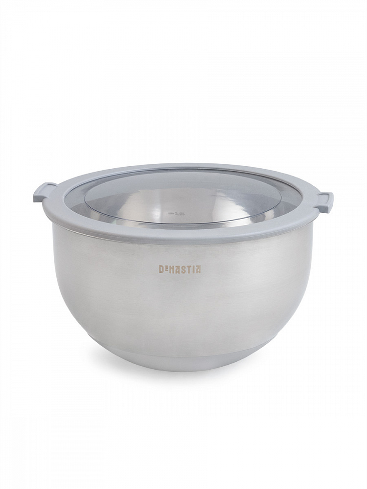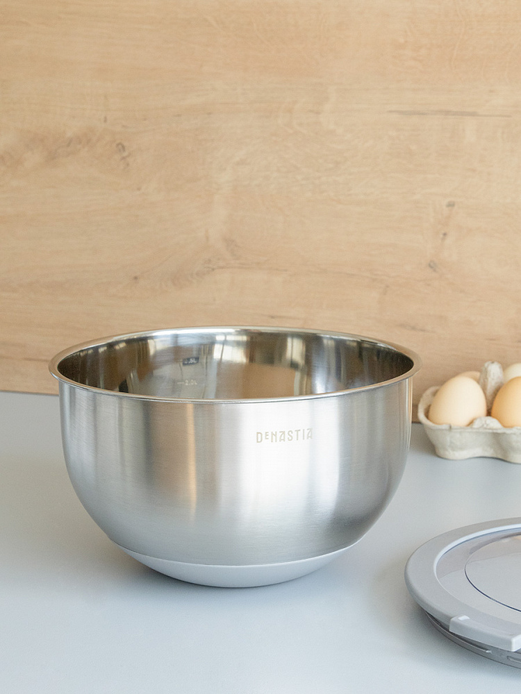 Миска 3л DE'NASTIA прозрачная крышка силиконовое дно серый нержавеющая сталь