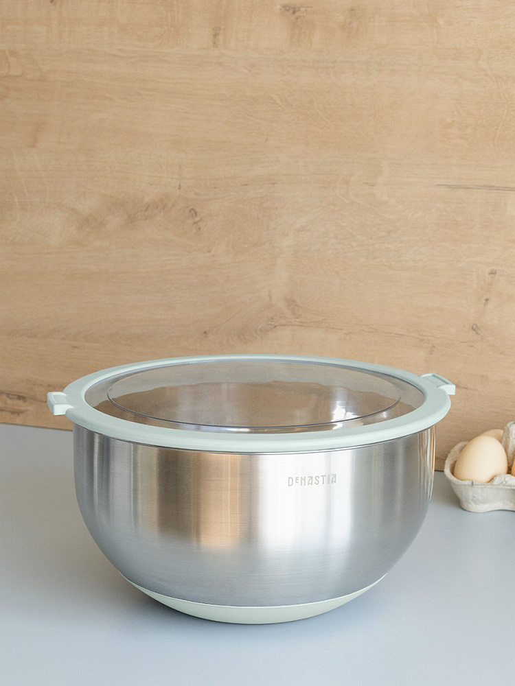 Миска 5л DE'NASTIA прозрачная крышка силиконовое дно ментол нержавеющая сталь