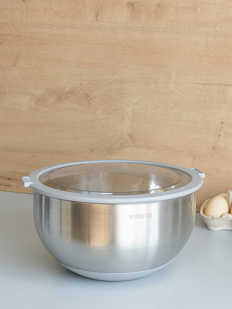 Миска 5л DE'NASTIA прозрачная крышка силиконовое дно серый нержавеющая сталь