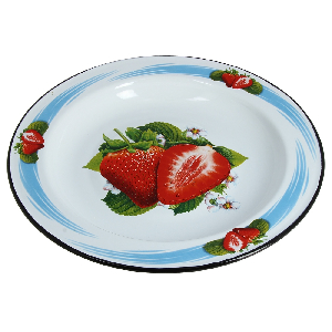 Российская компания СтальЭмаль производит стальную посуду с эмалированным и антипригарным покрытием. Она является одним из лидеров российского рынка эмалированной посуды с ежегодным объемом выпуска более семи миллионов изделий, которые продаются не только в России, но и в СНГ, Европе и Азии. Блюдо марки СтальЭмаль, украшенное аппетитным рисунком, выполнено из штампованной малоуглеродистой стали с эмалевым покрытием, устойчивым к пищевым кислотам. Двойной слой эмалевого покрытия не дает контактировать с пищей оксидам металла, благодаря чему вкус блюд не искажается. Блюдо можно мыть в посудомоечной машине. Яркое блюдо послужит не только удобной посудой,но и оригинальным элементом кухонного интерьера.