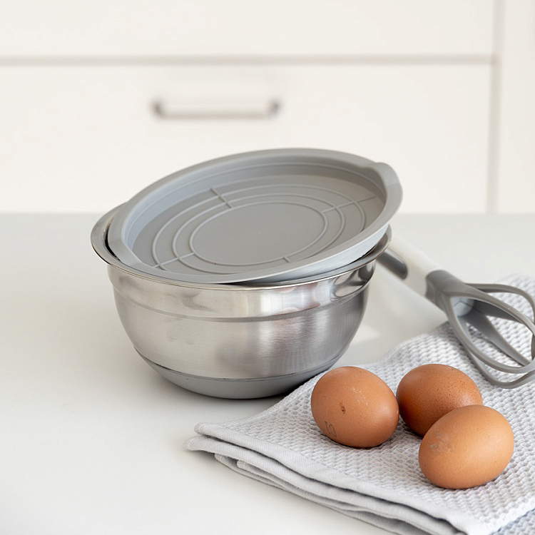 Миска для приготовления 1,4л 18см DE'NASTIA с крышкой серый нержавеющая сталь/силикон