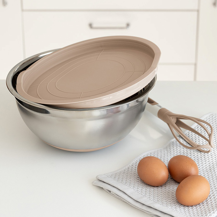 Миска для приготовления 4л 26см DE'NASTIA с крышкой бежевый нержавеющая сталь/силикон