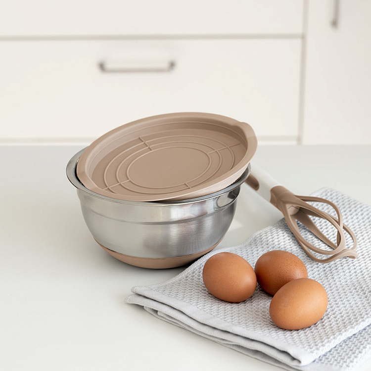 Миска для приготовления 1,4л 18см DE'NASTIA с крышкой бежевый нержавеющая сталь/силикон