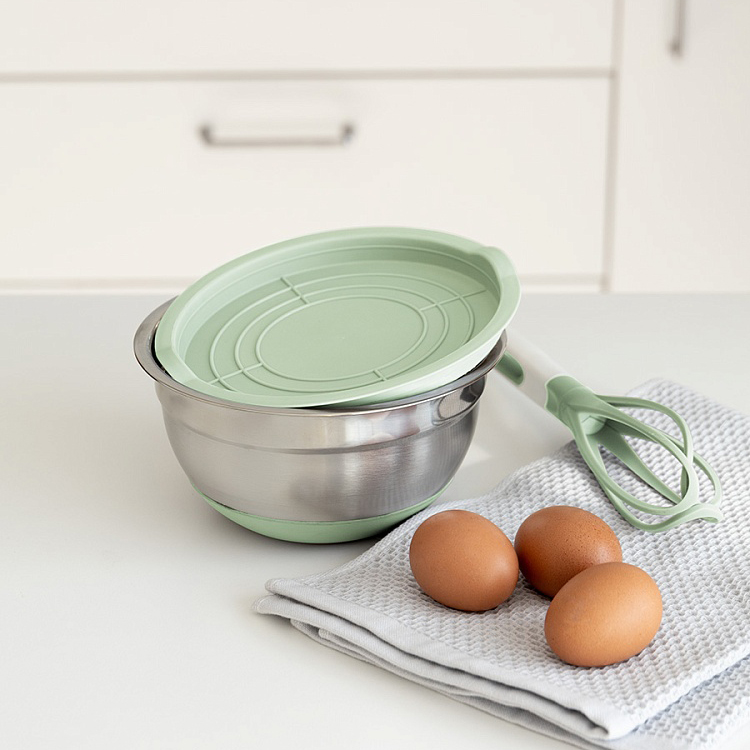 Миска для приготовления 1,4л 18см DE'NASTIA с крышкой мятный нержавеющая сталь/силикон