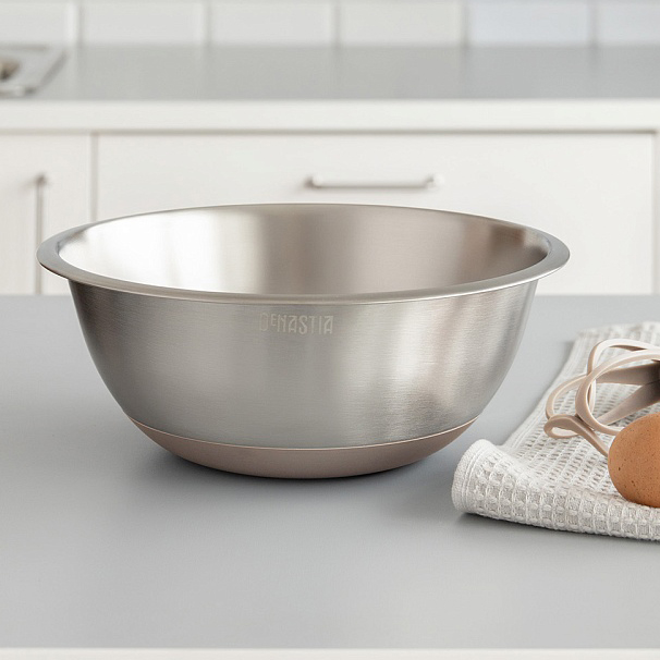 Миска для смешивания продуктов 26см 3л DE'NASTIA силиконовое дно бежевый нержавеющая сталь