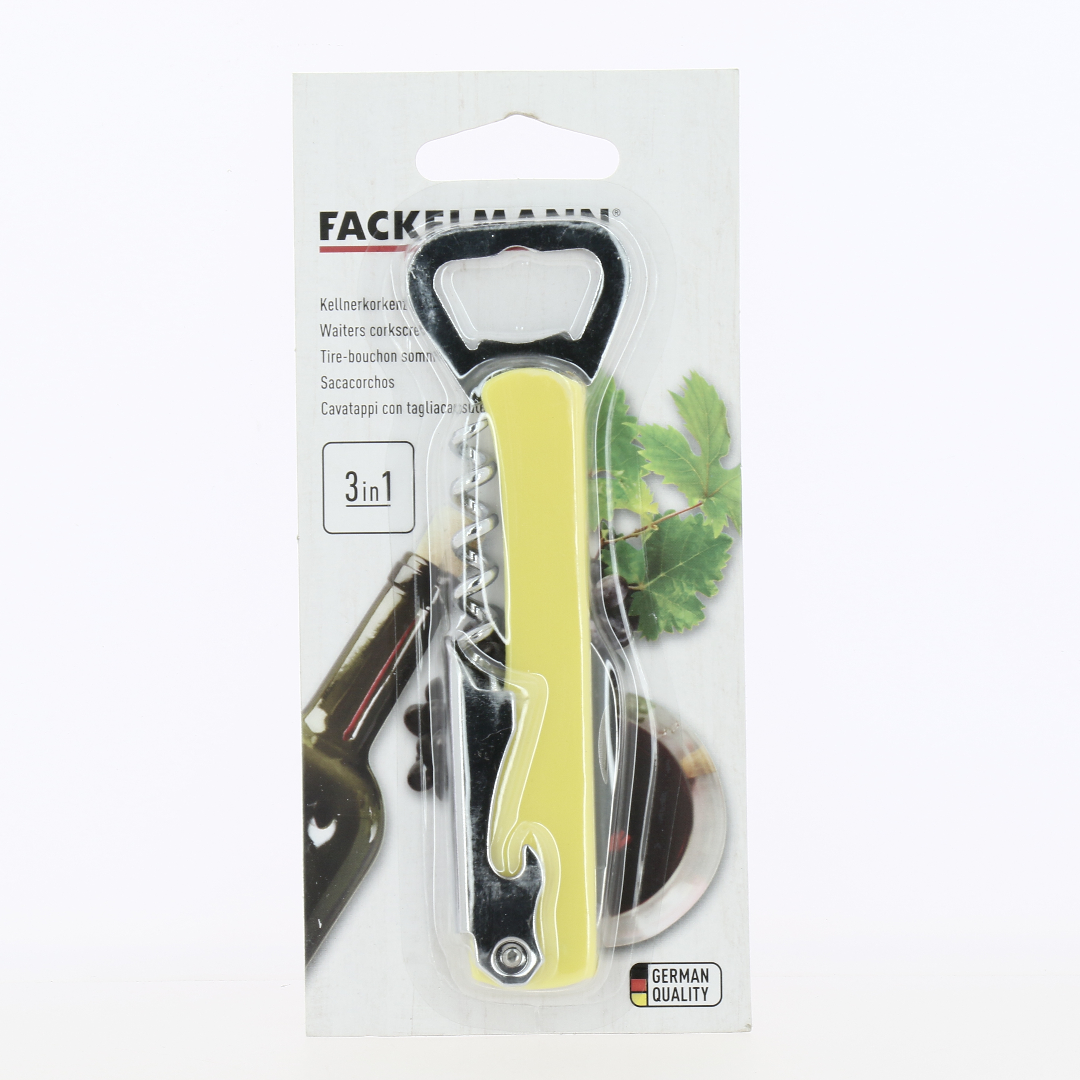 Штопор многофункциональный FACKELMANN – это незаменимый продукт на кухне каждой хозяйки. Он удобен и прост в обращении, с помощью него можно откупорить как винные пробки, так и прижимные. А главное – он компактный и требует мало места для хранения, его можно взять с собой на дачу или пикник. Стильный современный дизайн. Сделан из хромированной стали и пластика.