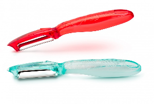 Подвижное двустороннее лезвие овощечистки позволяет хорошо очищать неровные поверхности любых овощей и фруктов.