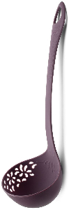 Изделие дает возможность извлекать продукты из супов и бульонов. Специальные прорези на одной из сторон, позволяют стекать излишкам масла, соуса или жидкостей. Половник-шумовка изготовлена из пищевого пластика и выдерживает температуру до 210˚. Изделие прекрасно подойдет для посуды с антипригарным, тефлоновым или керамическим покрытием. Она имеет удобную рукоятку со специальным противоскользящим рисунком и петлю для подвешивания.