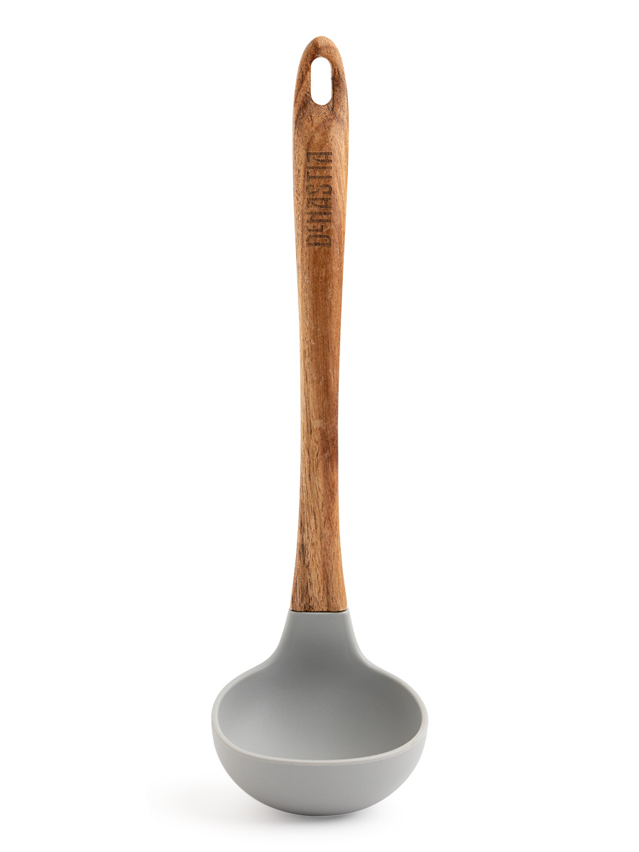Половник 30x8x1,6см DE'NASTIA деревянная ручка из акации серый силикон