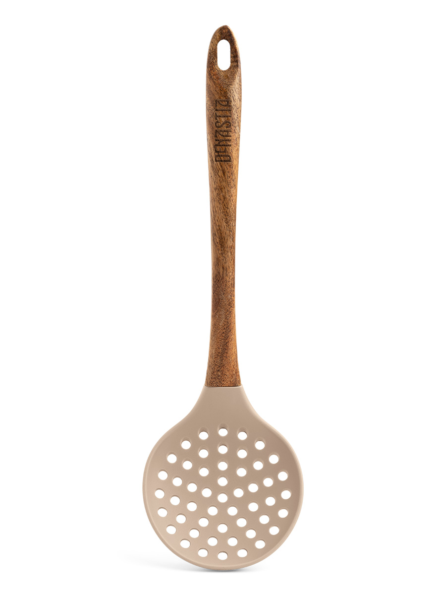 Шумовка 34x10x1,6см DE'NASTIA деревянная ручка бежевый силикон/акация
