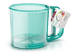 Кружка-сито имеет шкалу с делениями 125/250 грамм и удобный механизм с рычагом на ручке, который не требует особых усилий при использовании. Изделие предназначено для просеивания муки, сахарной пудры и других сыпучих продуктов. Сито компактно, его можно подвесить за ручку в любом месте на кухне.