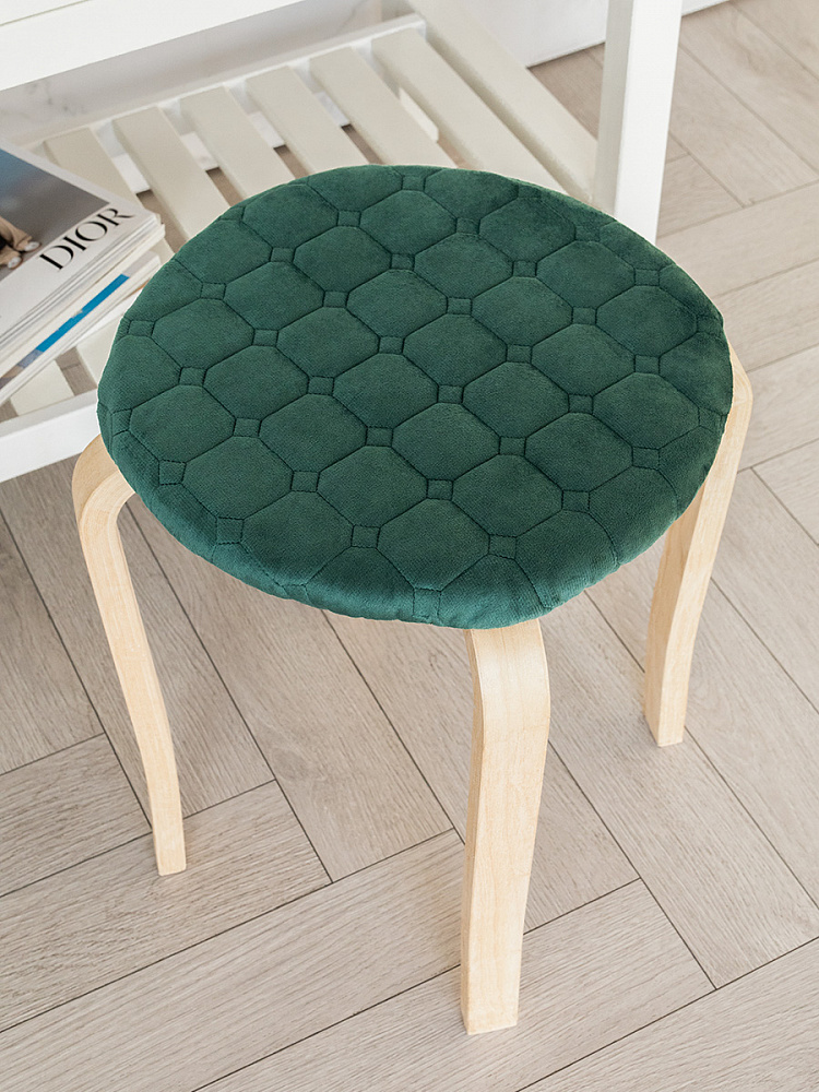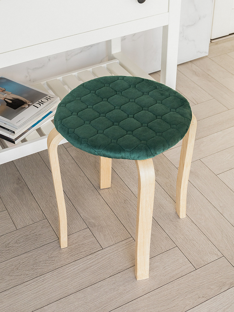 Чехол на табурет 33см DE'NASTIA круглый на резинке зеленый полиэстер