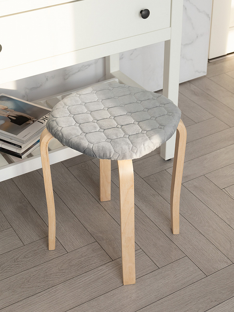 Чехол на табурет 33см DE'NASTIA круглый на резинке серый полиэстер