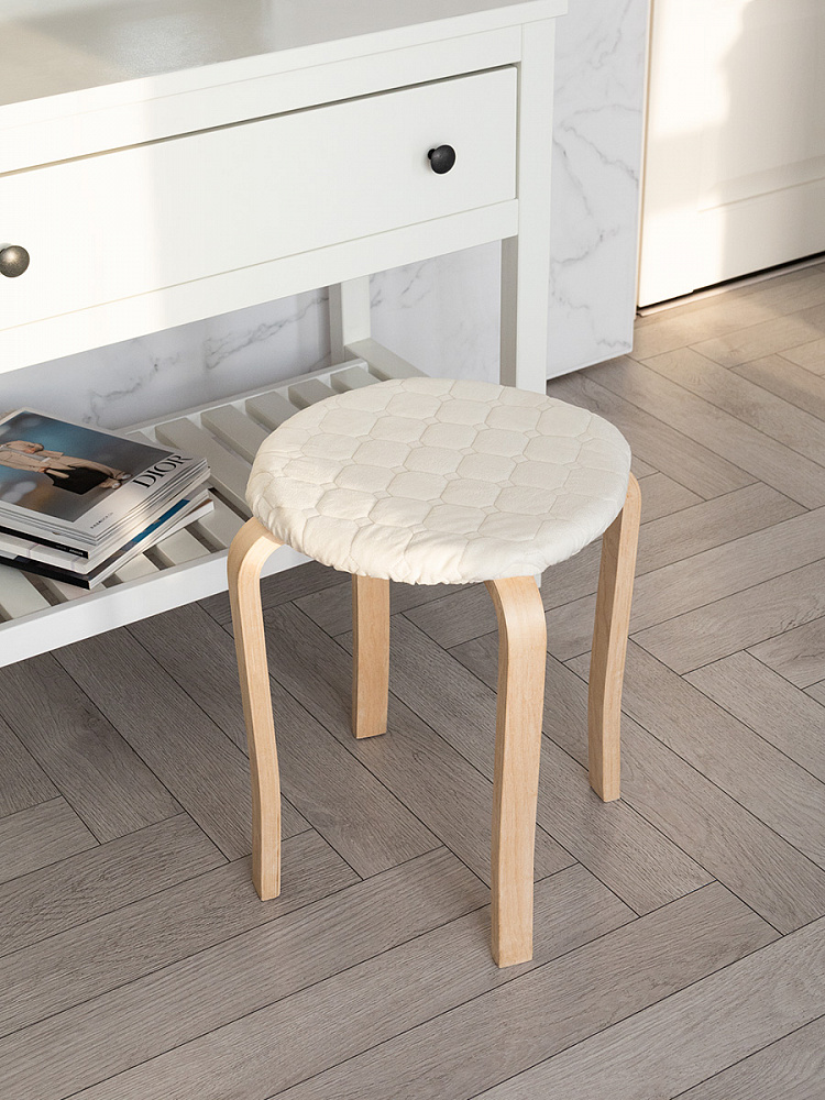 Чехол на табурет 33см DE'NASTIA круглый на резинке молочный полиэстер