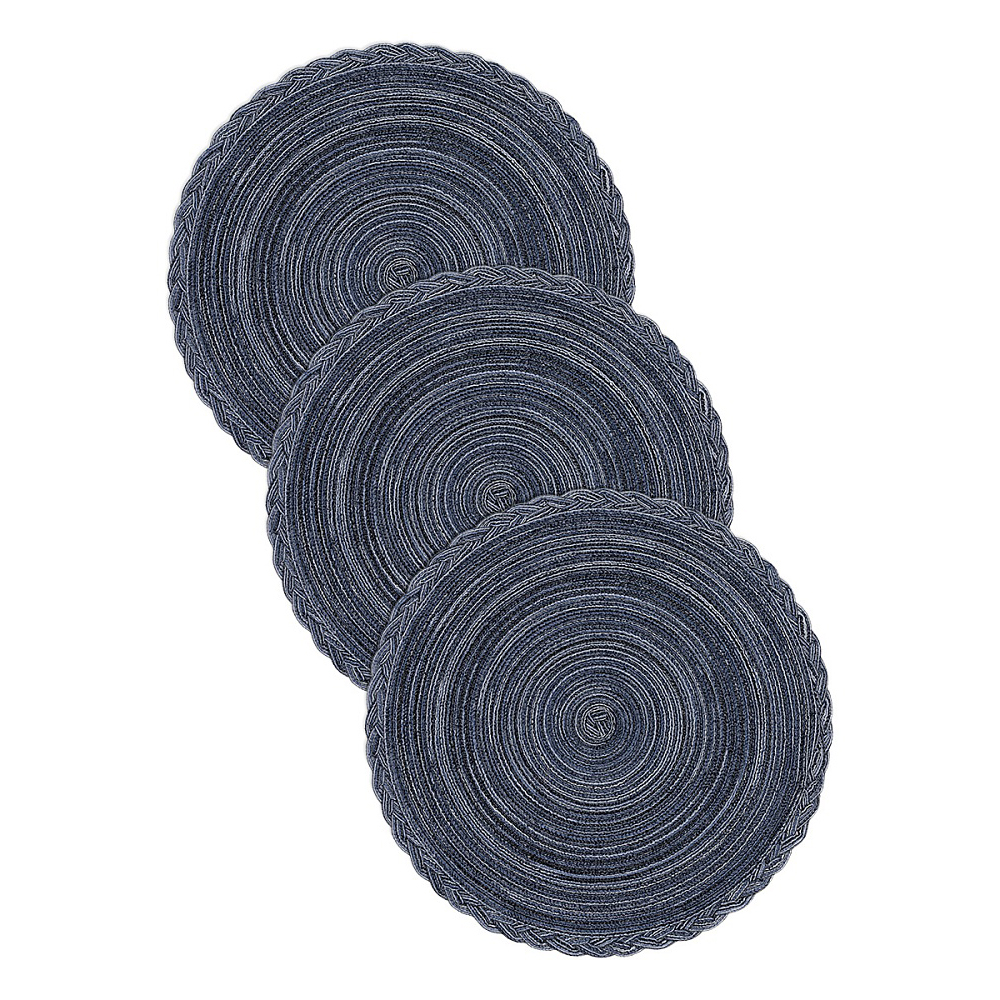 Набор салфеток 3шт 38см DE'NASTIA декор коса синий меланж полиэстер