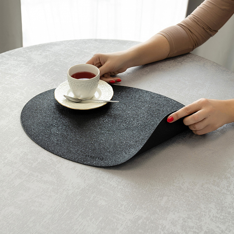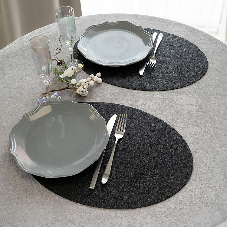 Салфетка сервировочная DeNASTIA Глиттер, ПВХ, 45х32, овал черный E000674