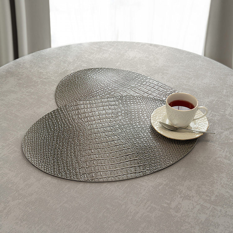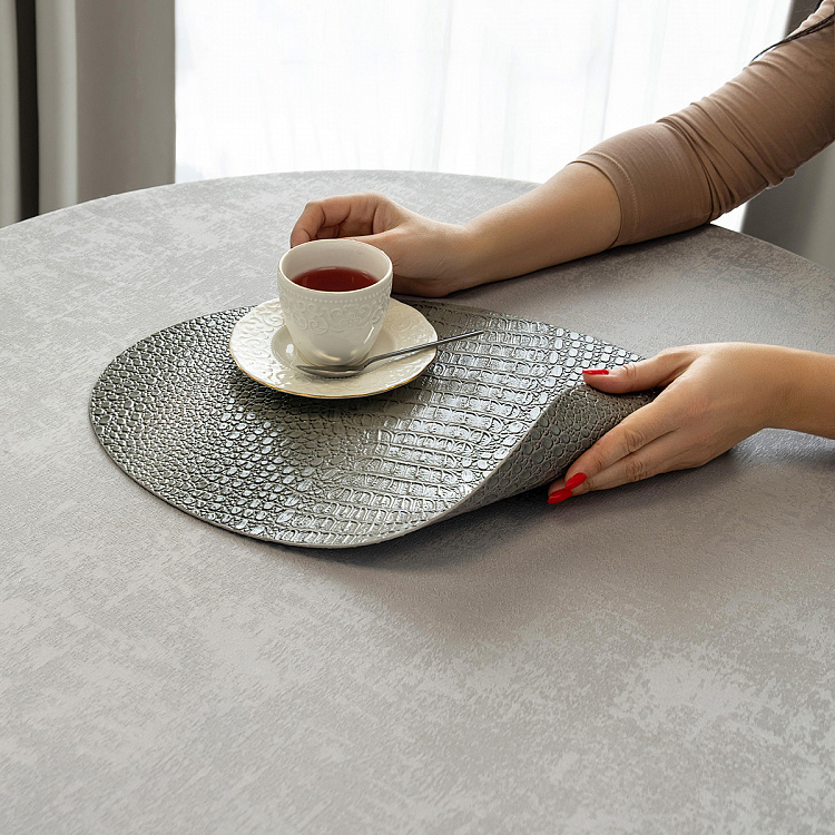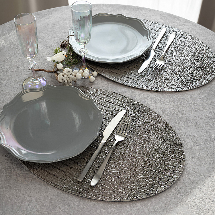 Салфетка сервировочная DeNASTIA Змея Глянец, ПВХ, 45х32, овал серый E000663