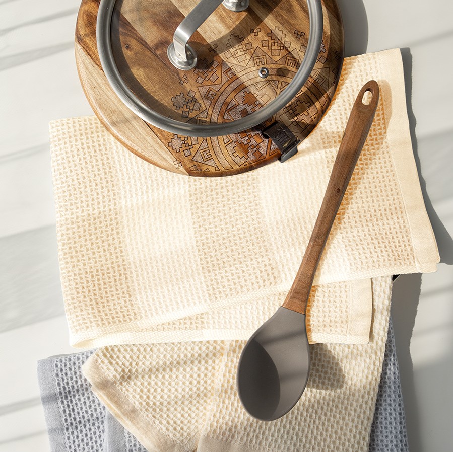 Полотенце кухонное 40x60см DE'NASTIA Вафля Клетка желтый хлопок