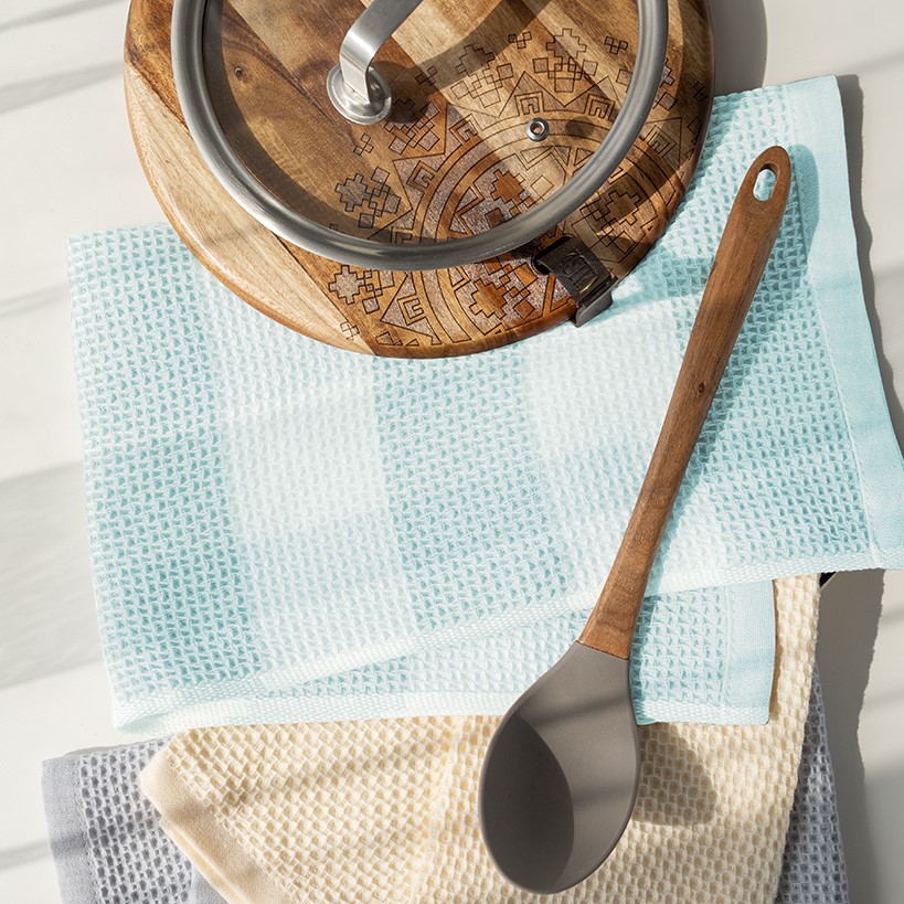 Полотенце кухонное 40x60см DE'NASTIA Вафля Клетка бирюзовый хлопок