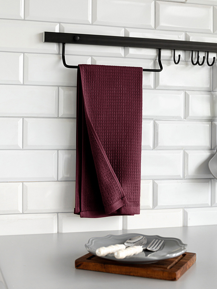 Полотенце кухонное DeNASTIA вафля/махра 470gsm 35x75, хлопок, винный D100416