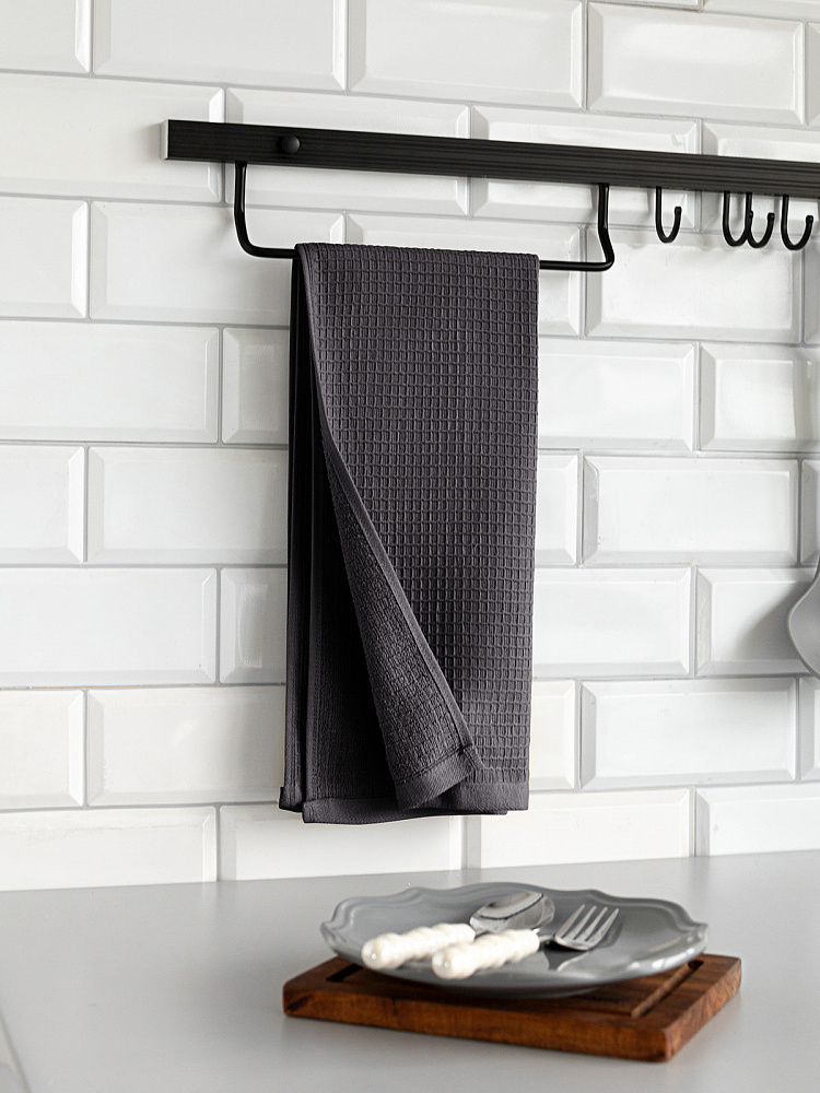 Полотенце кухонное DeNASTIA вафля/махра 470gsm 35x75, хлопок, графит D100415