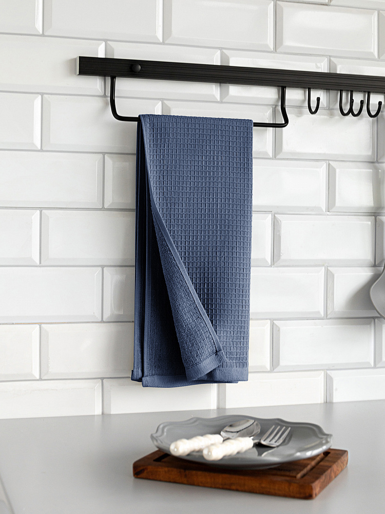 Полотенце кухонное DeNASTIA вафля/махра 470gsm 35x75, хлопок, темно-синий D100417