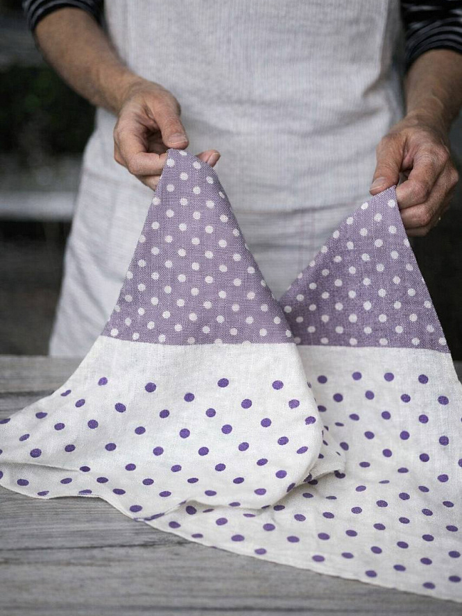 Полотенце кухонное 34x70см DE'NASTIA горох 330гр фиолетовый/белый махра/лён хлопок
