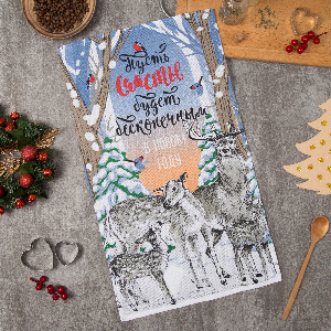 Полотенце кухонное Доляна Счастливое время с отличной впитываемостью станет вашим любимым помощником на праздничной кухне! Декоративное полотенце будет отличным новогодним подарком! Благодаря натуральному хлопковому составу изделие остается мягким долгое время и отлично впитывает влагу, в то же время, изделия легко стираются и быстро сохнут. Яркое, а главное практичное решение для тех, кто ищет настоящий комфорт и не хочет переплачивать.