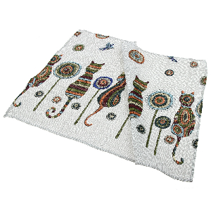 Полотенце кухонное Серии Кошки состав ткани хлопок 100 %. Оригинальный принт с изображением домашних любимцев кошек и их друзей птичек. Принт ткани стилизован под старинное вязание крючком. Полотенце кухонное серии Кошки украсит Вашу кухню, станет оригинальным подарком, обязательно дополните к Полотенцу и другие аксессуары серии Кошки.
