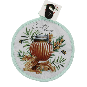 Прихватка Sweet honey - незаменимый помощник на любой кухне. Основное предназначение - защита рук во время приготовления еды от ожогов.Такие симпатичные прихватки не только будут выполнять свое прямое предназначение, но и украсят Вашу кухню. Изделия оформлены красочным принтом. Прихватки мягкие, удобные и практичные. Она защитит ваши руки и предотвратит появление ожогов. С помощью текстильной петельки их можно подвесить на крючок.