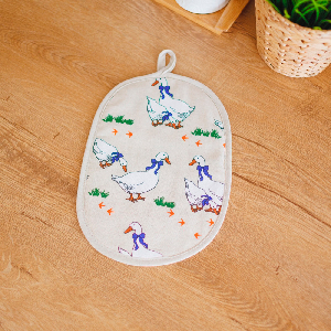 Прихватка YELLOW RABBIT Гусики Серые овал Состав:70% лен,30%хлопок,арт045