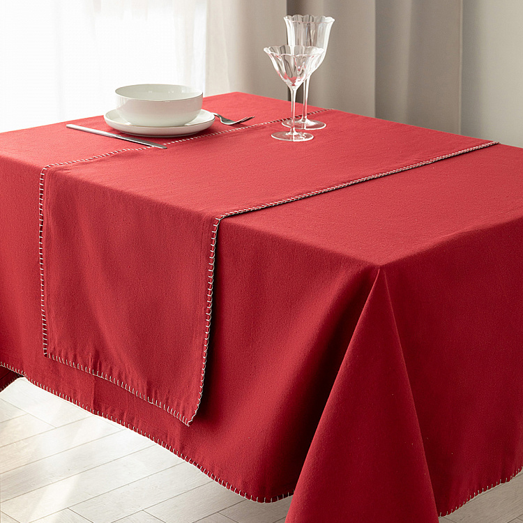 Раннер 35x160см DE'NASTIA Holiday вышивка серебром красный хлопок/полиэстер