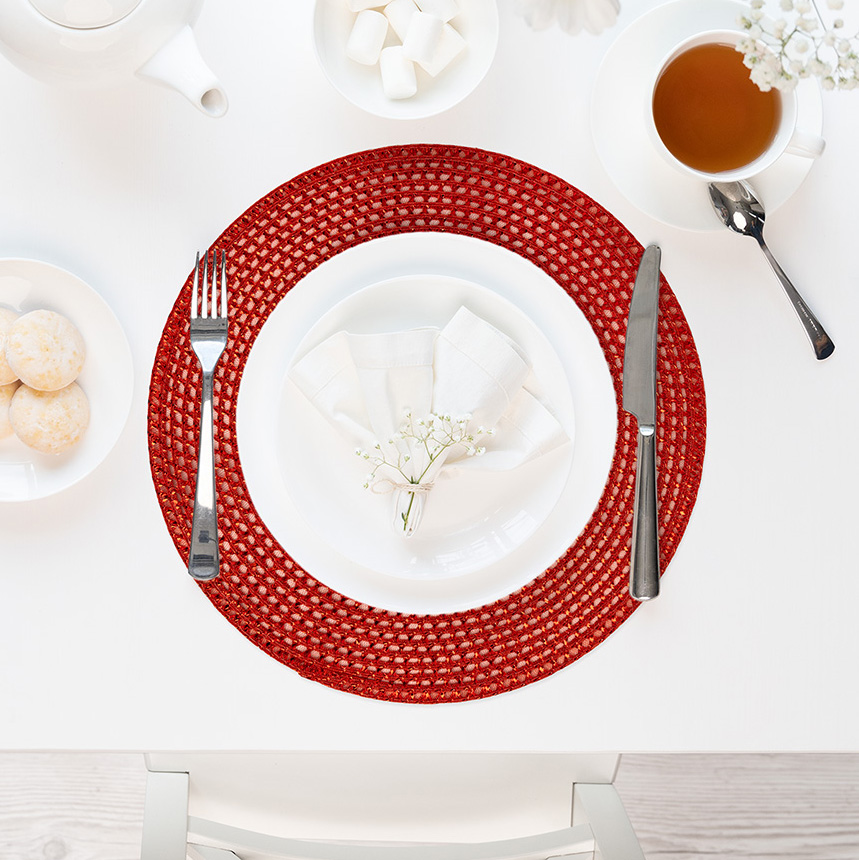 Салфетка сервировочная 38см LUCKY круглая блестящая красный полиэстер