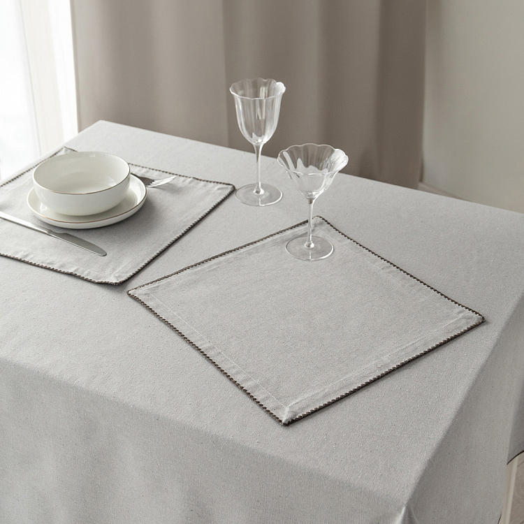 Набор салфеток 2шт 35x35см DE'NASTIA Natural вышивка по краю светло-серый меланж хлопок