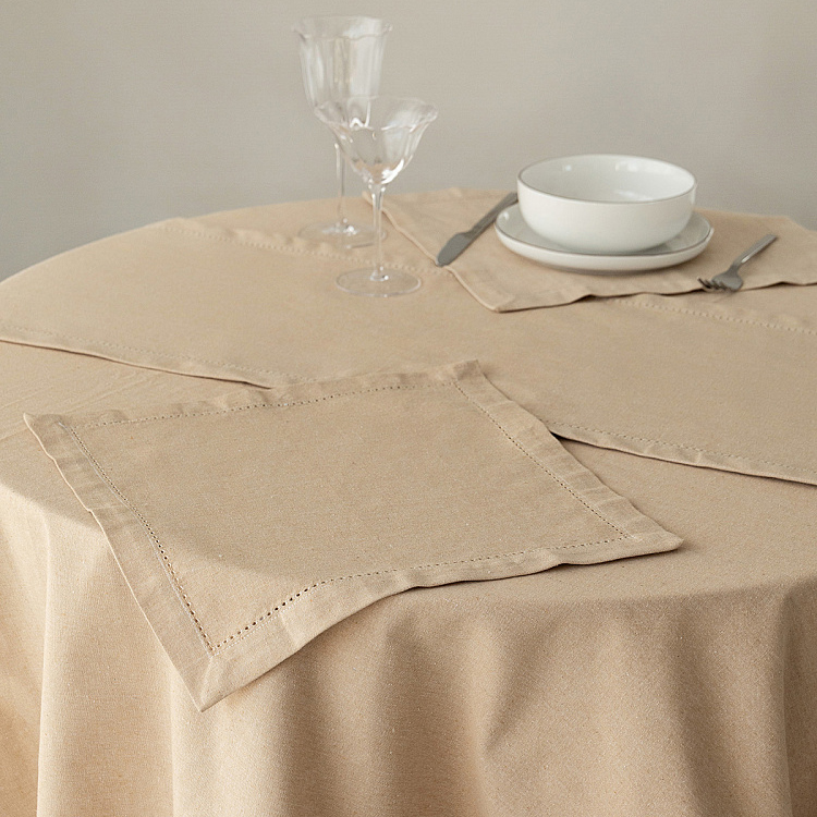 Набор салфеток 2шт 35x35см DE'NASTIA Basic linen мережка по краю бежевый хлопок