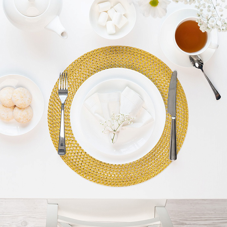 Салфетка сервировочная 38см LUCKY круглая блестящая золото полиэстер