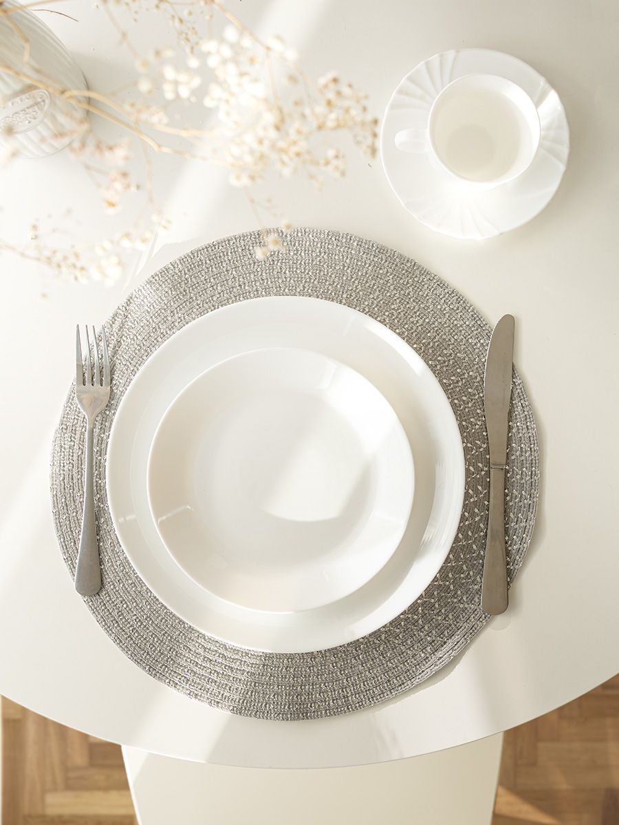Салфетка сервировочная 36см LUCKY круглая серебро полиэстер