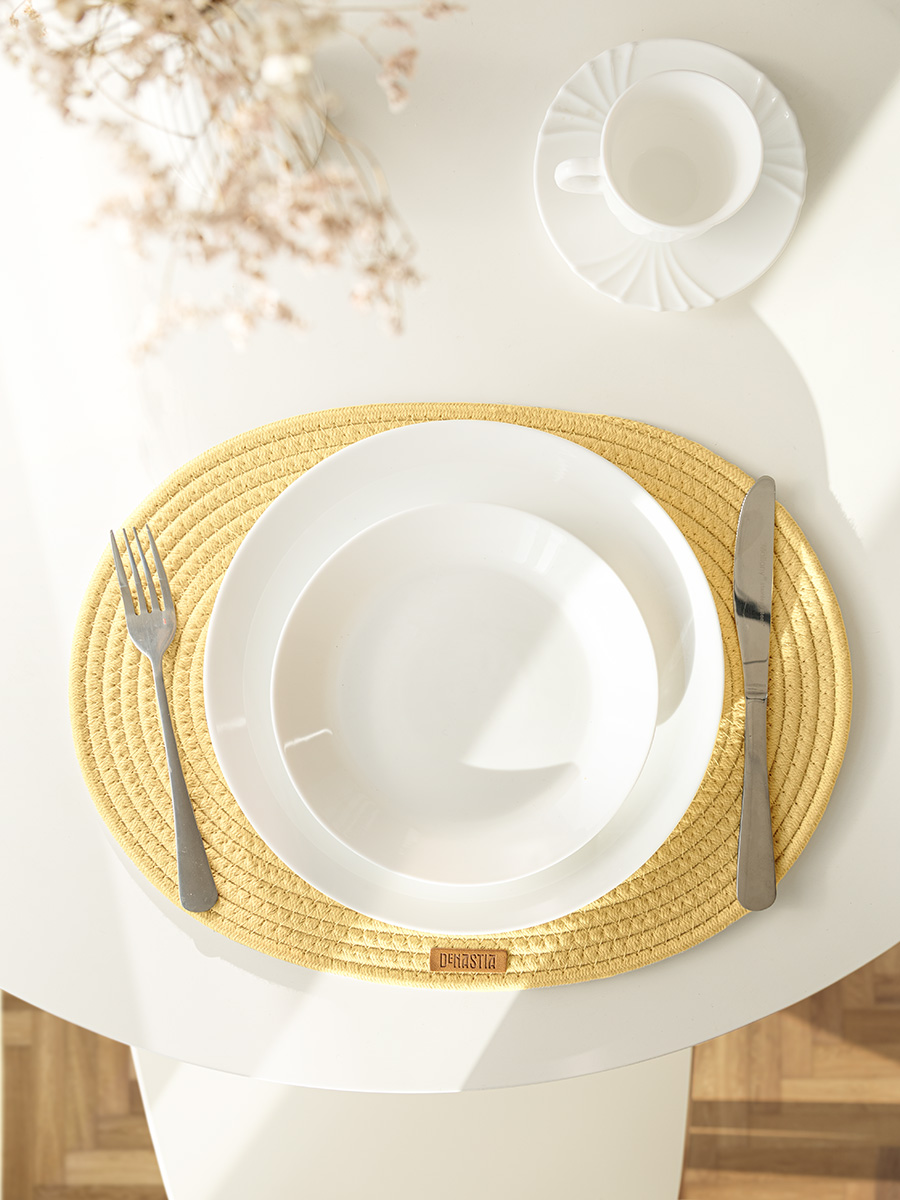 Салфетка сервировочная 30х40см DE'NASTIA Шнурок овал желтый хлопок-50%/полиэстер-50%