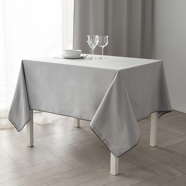 Скатерть 150x230см DE'NASTIA Natural вышивка по краю светло-серый меланж хлопок/полиэстер