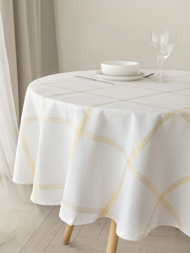 Скатерть 160см DE'NASTIA Клетка Holiday белый/золото хлопок/полиэстер