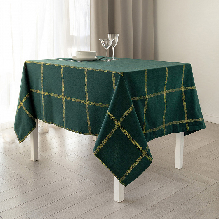 Скатерть 140x180см DE'NASTIA Клетка Holiday зеленый/золото хлопок/полиэстер