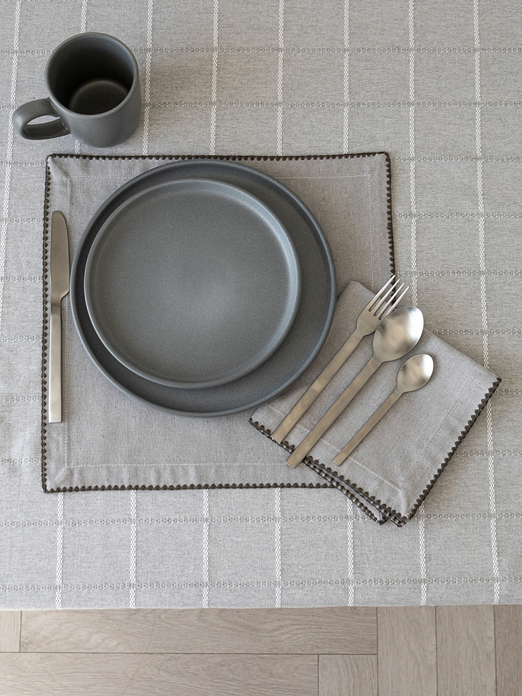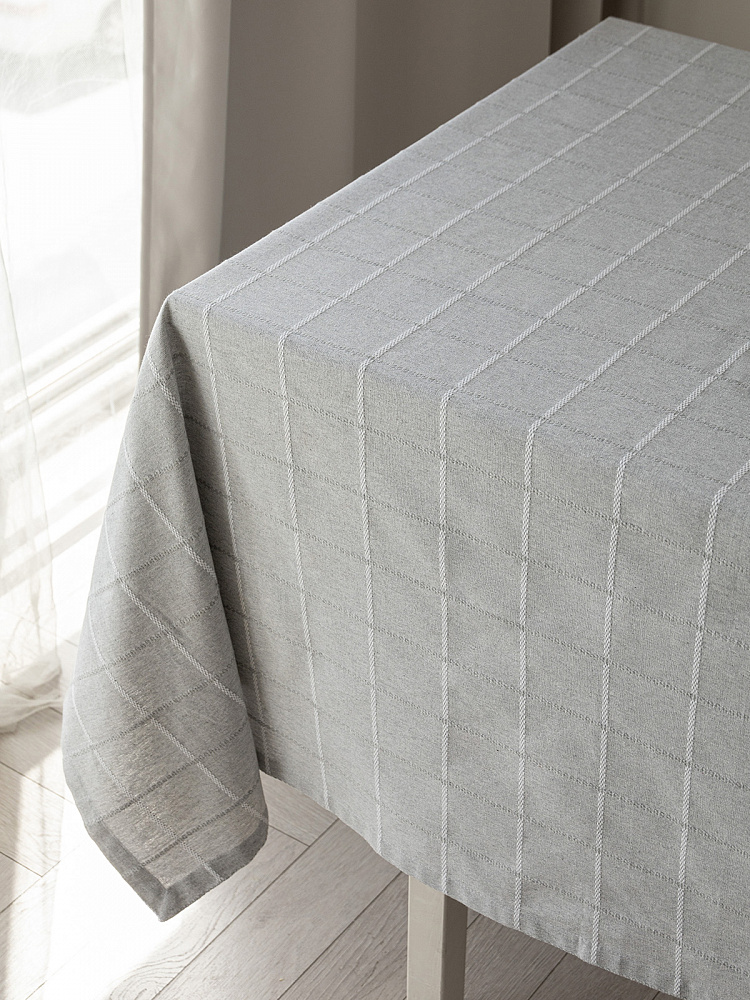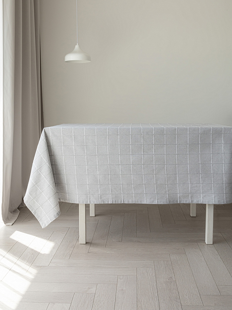 Скатерть 150x230см DE'NASTIA Клетка Scandi серый хлопок/полиэстер