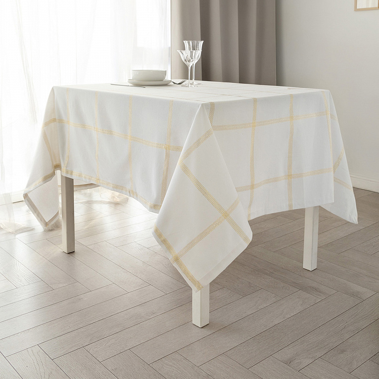 Скатерть 150x230см DE'NASTIA Клетка Holiday белый/золото хлопок/полиэстер