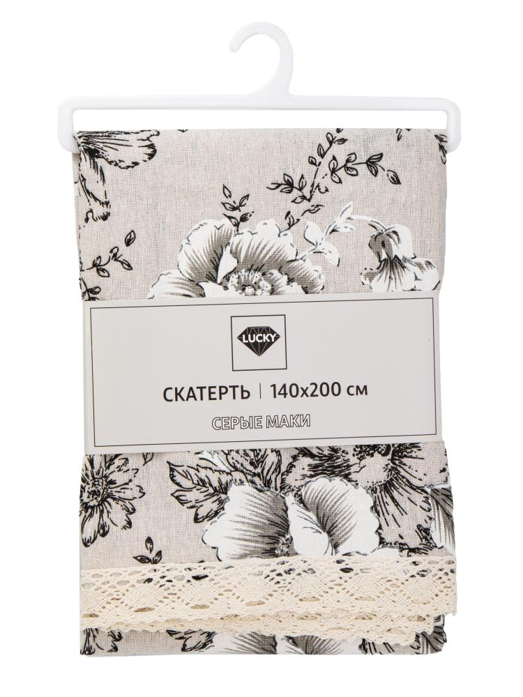 Скатерть 140х200см LUCKY Серые Маки полиэстер/хлопок